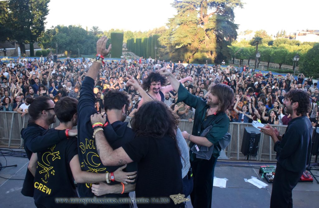 Y aunque una hora mas tarde del horario previsto ( por problemas del backline) subía la banda sevillana a las tablas del escenario en el Alcázar de los reyes cristianos, marco incomparable para cualquier evento se tercie, ya disfrutamos de muchos conciertos en ese maravilloso lugar al aire libre, el concierto superó totalmente mis expectativas.